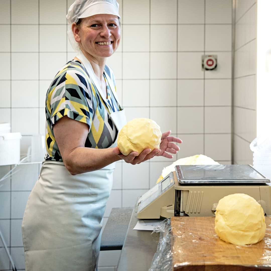 Niet voor niks was boter vroeger een kostbaar goedje. Boter wordt gemaakt van het kleine laagje room dat op de melk komt drijven. Daarna resteert ‘ondermelk’, die natuurlijk óók gebruikt wordt om lekkere zuivel van te maken. Vroeger werd er niets verspild, en vinden we nog steeds belangrijk.